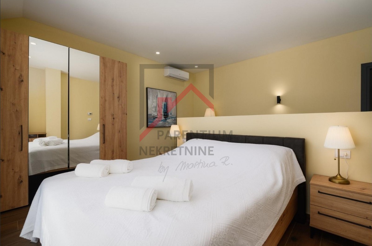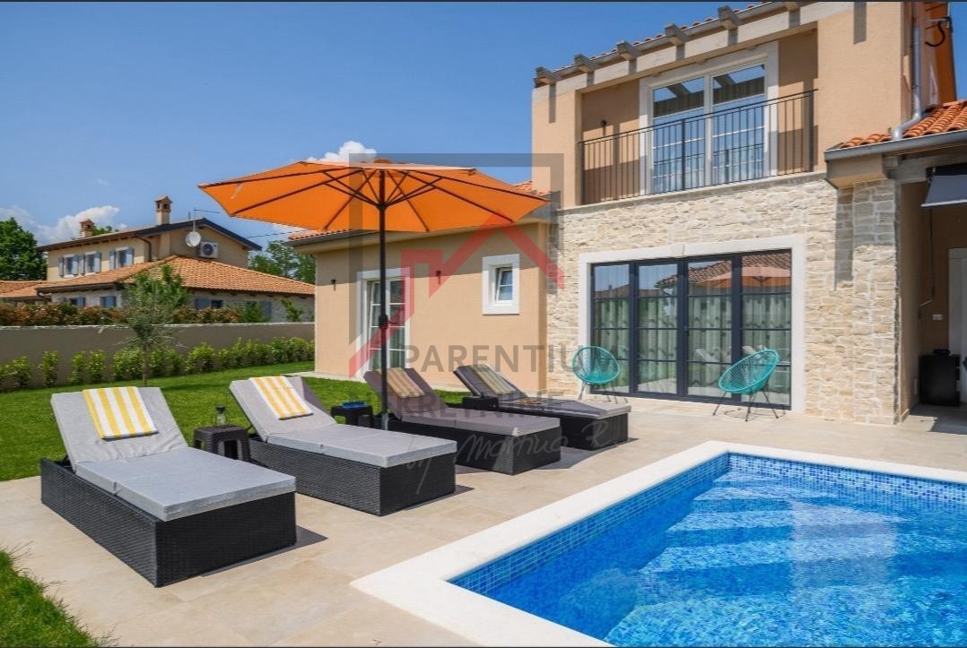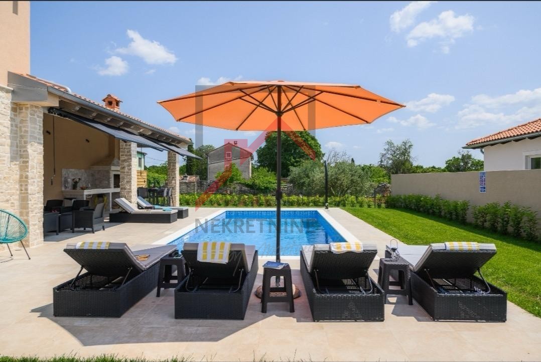 Diese komplett möblierte und ausgestattete Villa mit 186 m² Wohnfläche und einem beheizten Pool (38 m²), Baujahr 2023 nach höchsten EU-Standards, steht zur Vermietung. Die Villa befindet sich im ruhigen Dorf Maružina und bietet höchsten Komfort, absolute Privatsphäre und Meerblick Richtung Rovinj.