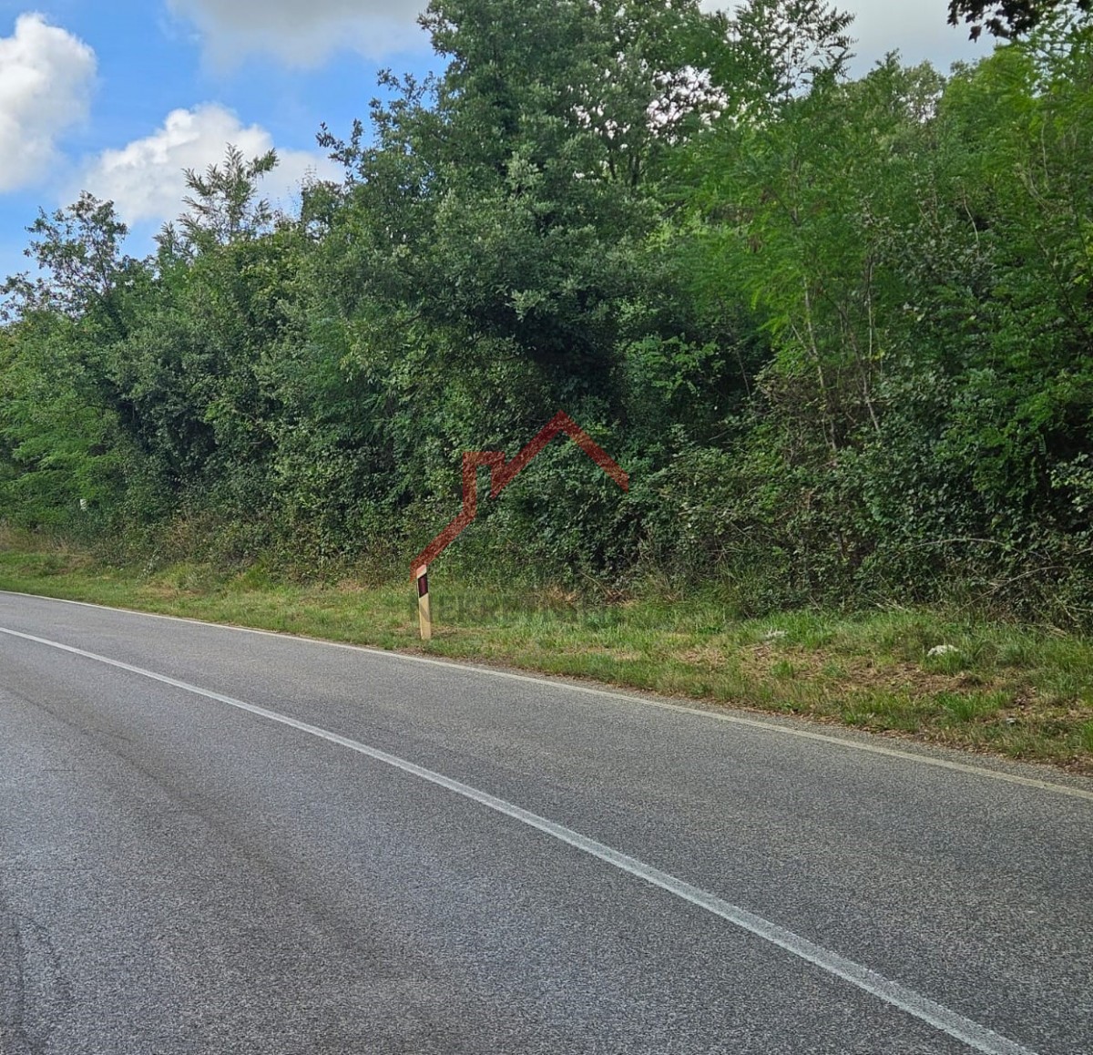 Building land for sale between Škropeti and Karojba. The land area is approx. 2130m2. The building land is located along the main road.