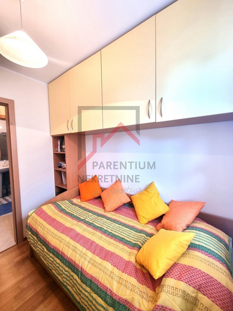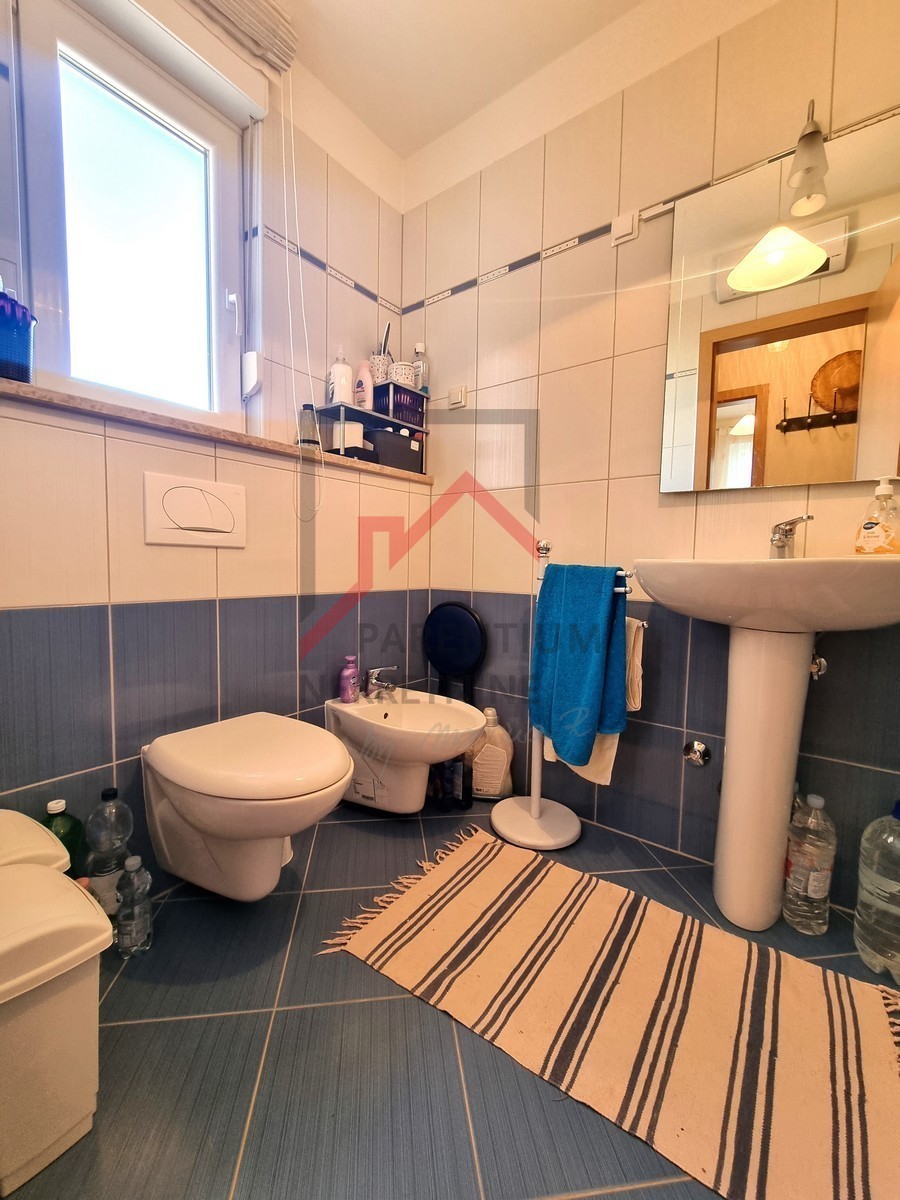 The 58 m2 apartment is located on the 1st floor of a smaller building of only 5 apartments, 500 m from the well-maintained beaches and city amenities. It was built in 2009. It has an excellent layout and orientation. It consists of an entrance hall, toilet, living area (living room, dining room and kitchen) with access to a balcony with a sea view. The sleeping area is completely separated by a hallway and a door, where there are two bedrooms (one smaller, the other spacious), and a bathroom with a window. Each room and living room have inverter air conditioning units, and there is also a chimney in the living room. There is a storage room of 3.47 m2 in the basement of the building, and the apartment also has one parking space. It is an excellent choice for those who want to be close to the sea and amenities, just a 10-minute walk away!