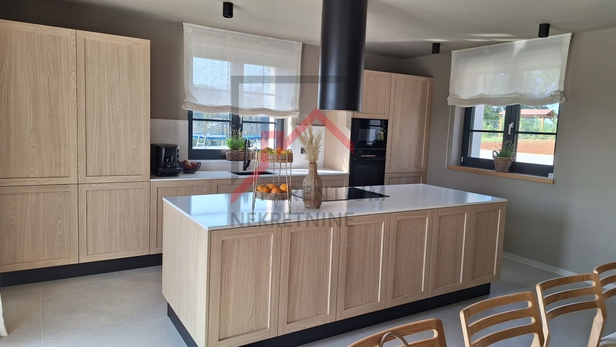 Uz kuću se nalazi i pomoćni objekt od 70m2 gdje je predviđena sauna i ljetna kuhinja u potpunosti opremljena sa velikim stolom za 12 osoba.