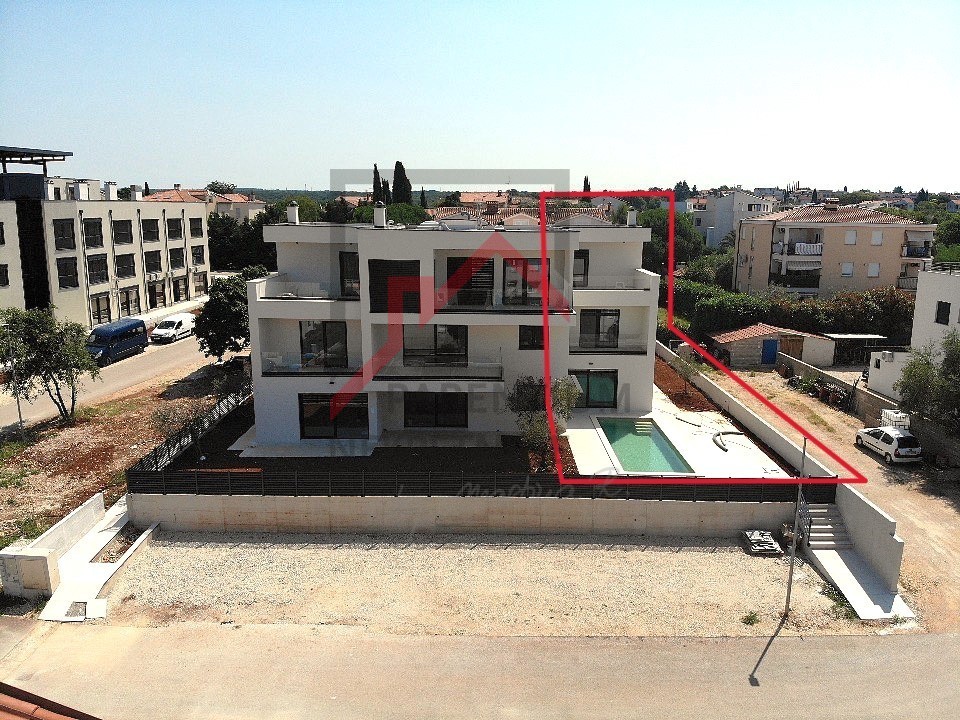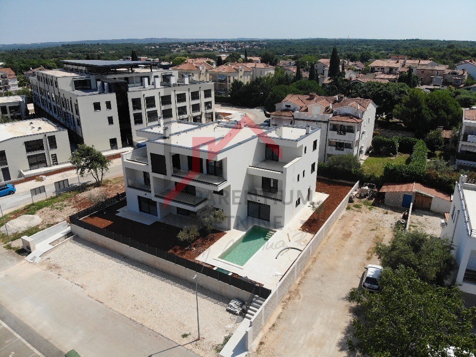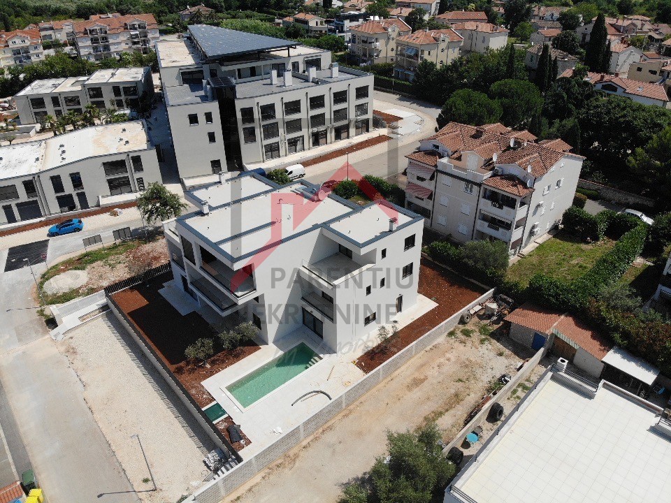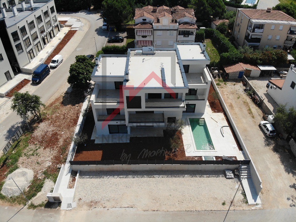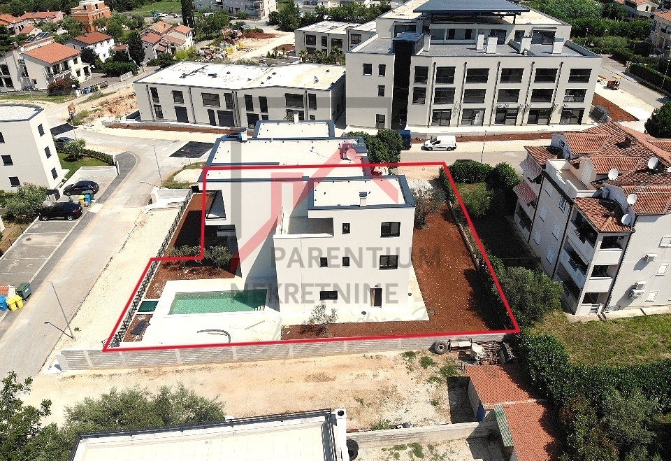 U Poreču blizu mora nalazi se ova prostrana kuća u nizu moderne stambene zgrade. Pogled na more s više etaža čine ju jedinstvenom prilikom na tržištu. Površina kuće s dvije natkrivene terase je 119 m2 te se sastoji od prostranog dnevnog boravka s kuhinjom i blagovaonom, spremište, toalet, praonica te izlaz na terasu s bazenom i sunčalištem. Na prvom katu su dvije spavaće sobe s vlastitim kupaonicama od kojih jedna spavaća ima terasu. Na trećem katu je i master spavaća soba s kupaonicom i predivnom terasom s koje se pruža panoramski pogled na more. Također je zamišljen i jacuzzi kako bi osjećaj komfora i luksuza bio potpun. Zgrada je odlično projektirana s naglaskom na intimnost svake stambene jedinice. Uz bazen i lijepo sunčalište, dovoljno prostora najveći argument ove kuće je sigurno predivna terasa na zadnjem katu s pogledom na more i mikRolokacija. Grijanje stana izvedeno je uz podno grijanje i putem klima uređaja koje hlade stan u ljetnim mjesecima.