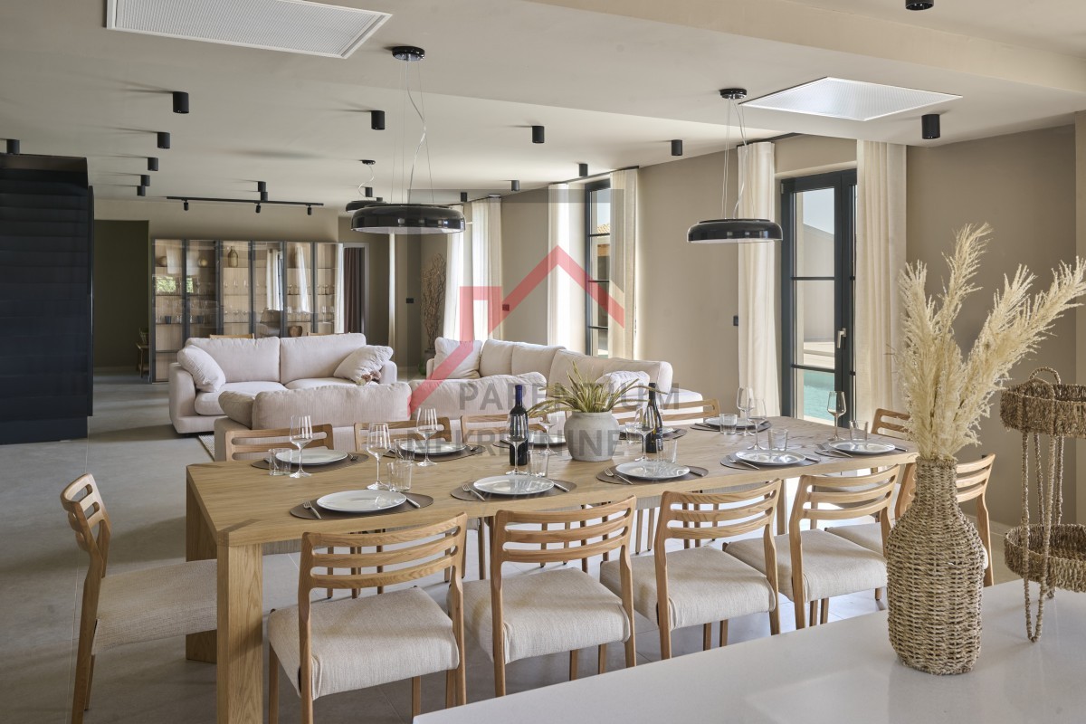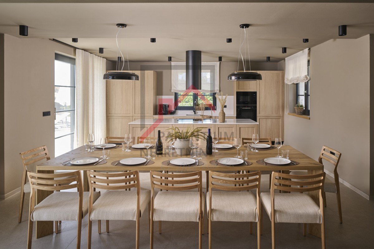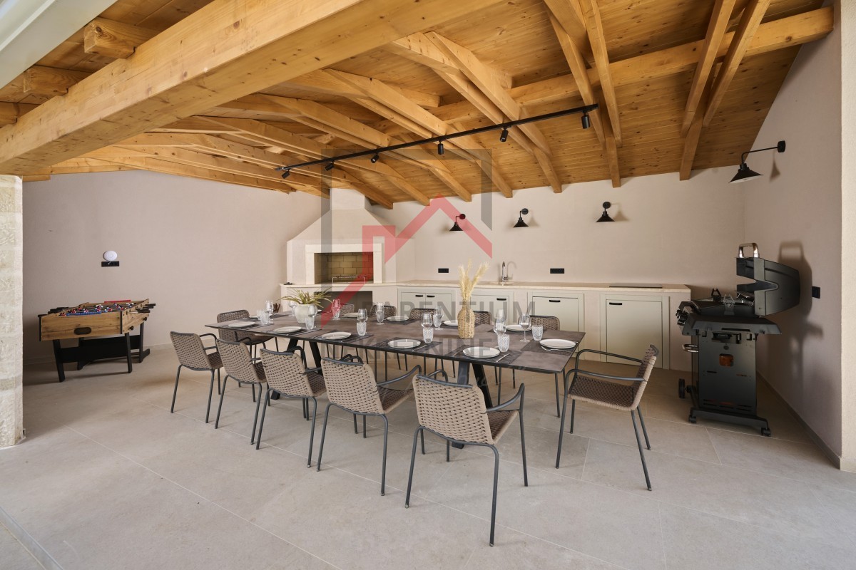 Uz kuću se nalazi i pomoćni objekt od 70m2 gdje je predviđena sauna i ljetna kuhinja u potpunosti opremljena sa velikim stolom za 12 osoba.